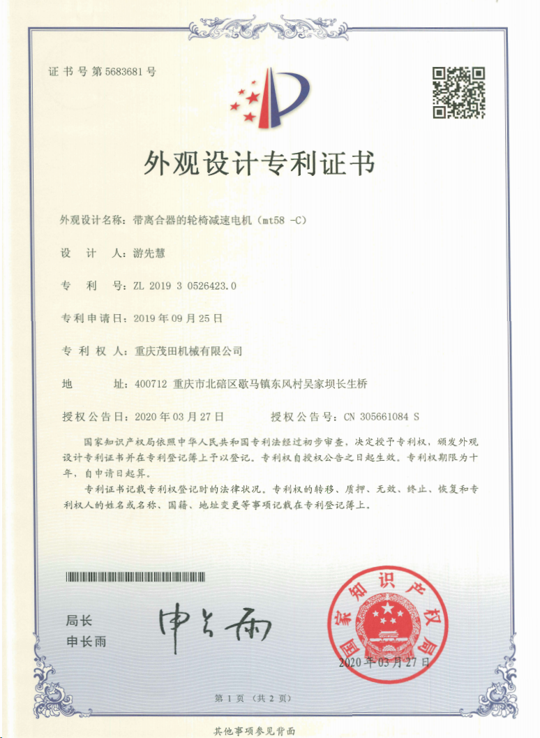 重慶茂田機械有限公司是國家級小巨人企業(yè)、國家高新技術企業(yè)、重慶市專精特新企業(yè)、重慶市知識產權優(yōu)勢企業(yè),致力于現代化山地農業(yè)機械、各類非標減速電機及其控制系統(tǒng)的研發(fā)、生產、銷售。擁有重慶市市級研發(fā)平臺1個 目前研發(fā)、生產、銷售產品廣泛應用于農業(yè)機械、醫(yī)療康復設備、交通代步工具、智能搬運設備、以及機器人動力系統(tǒng)等領域。我們的產品具有完整的自主知識產權,擁有多項專利技術及“重慶